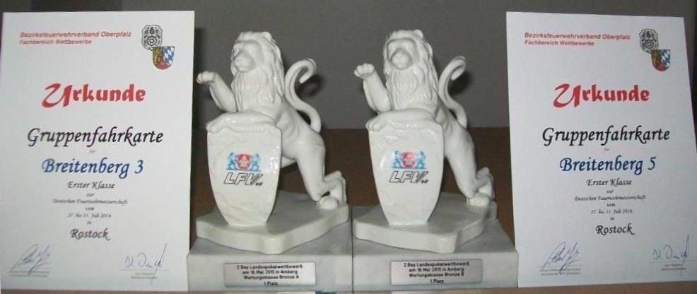 Durch herausragende Leistungen beim Aufbau im Löschangriff und im Staffellauf, wurden die beiden Breitenberger Wettbewerbsgruppen jeweils mit einem 1. Platz belohnt und konnten sich in ihrer Klasse jeweils als beste bayerische Wettbewerbsgruppe an die Spitze der Reihung setzen. Dieser Erfolg zeigt sich wieder einmal die langjährige erfolgreiche Arbeit im Bereich Wettbewerbswesens und die damit verbundene gute Kameradschaft bei der Freiwilligen Feuerwehr Breitenberg.