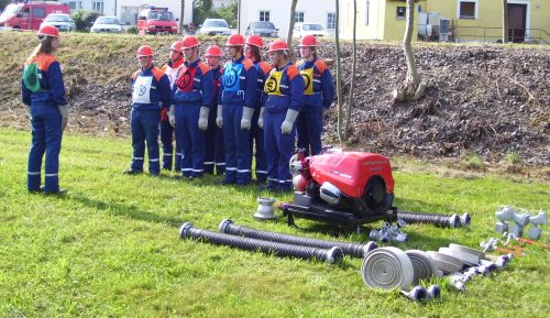 Mit Löschen allein ist es nicht getan: 400 Feueranwärter/innen kämpften am Samstag in Aldersbach um die Deutsche Jugendleistungsspange. Alle bestanden die Prüfung, bei der sie auch Ausdauer und Allgemeinbildung zeigen mussten. Alle zwei Jahre wird die Deutsche Jugendleistungsspange an Nachwuchsfeuerwehrler im Landkreis verliehen. Rund um das Aldersbacher Feuerwehrgerätehaus traten 400 Mädchen und Buben der Jugendfeuerwehren zu den Prüfungen an. Beim Staffellauf über 1500 Meter mussten die 15 bis 18-jährigen Jugendlichen in Gruppen von je neun Personen ihre Schnelligkeit unter Beweis stellen. Im Geschicklichkeitstest wurde ein 120 Meter langer Schlauch gekoppelt. Aber auch das Allgemeinwissen der Nachwuchsfeuerwehrler wurde getestet: Bei Fragen über den Bundespräsidenten oder auch bei Theoriefragen über die Feuerwehrausrüstung kamen die Prüflinge gehörig ins Schwitzen. Dennoch machten alle auf den Kreisjugendwart des Landkreises Passau, Robert Anzenberger, einen gut trainierten Eindruck: "Ich bin sehr zufrieden mit der allgemeinen Leistung. Das beweist die gute Vorbereitung durch die einzelnen Jugendwarte. Schirmherr und Bürgermeister Franz Schwarz zeigte ebenfalls erfreut über die Umsetzung des erlernten. Nach der Verleihung des Abzeichens u.a. durch Landrat Franz Meyer und Kreisbrandrat Josef Ascher traten die Jugendgruppen ihre Heimreise an. Die teilnehmenden Feuerwehren: Oberötzdorf, Straßkirchen, Oberilzmühle, Dorfbach, Göbertsham, Söldenau, Ortenburg, Bergham, Oberdiendorf, Rasberg, Hauzenberg, Walchsing, Sandbach, Aldersbach, Pörndorf, Ledering, Schwanham, Raßreuth, Oberneureuth, Pleinting, Vilshofen, Aunkirchen, Kößlarn, Oberwesterbach, Thanham, Kasberg, Büchl, Würding, Büchlberg, Windorf, Fürstenstein, Beutelsbach, Ederlsdorf, Thyrnau, Weng, Garham, Rathsmannsdorf, Schwarzhöring, Wildenranna, Wegscheid, Untergriesbach, Gottsdorf, Lämmersdorf, Gegenbach, Eidenberg, Möslberg, Rassberg, Wotzdorf, Bad Höhenstadt, Bad Füssing, Kirchham, Aigen, Schaibing, Hundsruck, Meßnerschlag, Thalberg, Breitenberg, Sonnen, Rotthalmünster, Tettenweis und Jahrdorf.