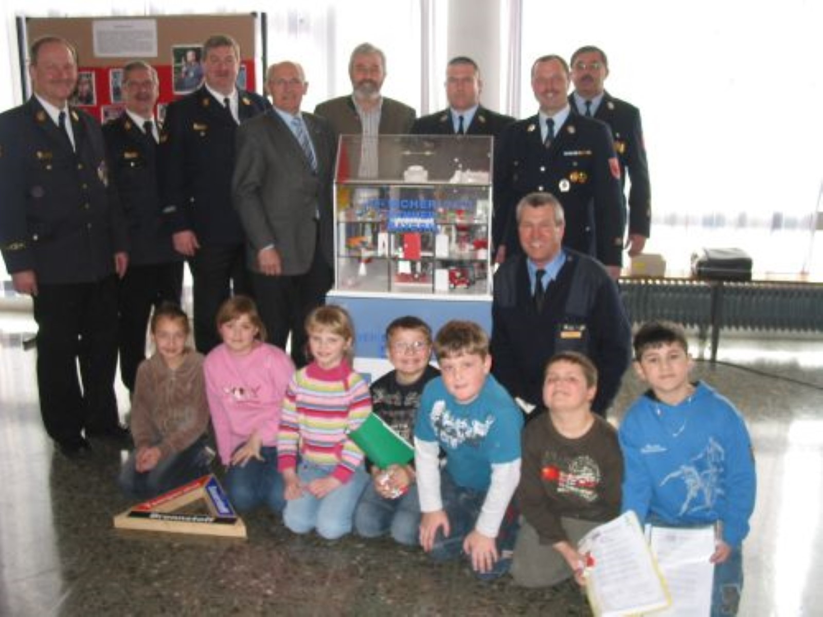 Dieses wird für die Brandschutzerziehung an den Grundschulen des Landkreises eingesetzt. So überreichte Helmut Steck von der Versicherungskammer Bayern ein solches Model-Rauchhaus an der Volksschule Breitenberg. Mit dabei waren die Schüler der 3. und 4. Klassen, Mitglieder der örtlichen Jugendfeuerwehren sowie Landrat Hanns Dorfner, Kreisbrandrat Josef Ascher, der Vorsitzende des Kreisfeuerwehrverbandes KBI Alois Fischl, KBI Horst Reschke sowie die Kommandanten der Feuerwehr Breitenberg Wolfgang Hainzl und Johann Grimbs. Helmut Steck führte mit den Schülern den Feuerwehrführungskräften die Einsatzmöglichkeiten des Rauchhauses im Unterricht vor. Landrat und Führungskräfte waren davon begeistert. Zusammen mit den Lehrkräften will die Feuerwehrführung des Landkreises die Kinder an den Grundschulen und Kindergärten mit dem Thema Brandschutz vertraut machen und ihnen das richtige Verhalten im Ernstfall vermitteln. Damit wird das Thema Brandsschutzerziehung weiter verstärkt und vertieft. Landrat Hanns Dorfner und Kreisbrandrat Josef Ascher danken Helmut Steck für die Übergabe des Model-Rauchhauses. Mit Musikstücken und einem Feuerwehrlied umrahmten die Schulkinder unter der Leitung von Lehrerin Christa Harslem die Präsentation.