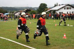 Die grenzenlose Freundschaft begann in den Morgenstunden des Wettkampftages mit dem Antreten am Bewerbsplatz, der Begrüßung durch Kreisbrandrat Josef Ascher, und Hissung der Wettbewerbsfahne unter Trompetenklängen von Oliver Wurster. Bürgermeister Helmut Rührl wünschte der Veranstaltung trotz der widrigen Wetterbedingungen einen Fairen sportlichen Verlauf. Die Feuerwehr Breitenberg fand beim Wettbewerb tatkräftige Unterstützung von der Patenwehr Gegenbach die den Verkehr regelte, vom Landkreis Passau,vom Landesfeuerwehrverband und im Besonderen vom österreichischen Bundesbewerbsleiter Josef Schwarzmannseder sowie den Wehren im benachbarten Mühlviertel, die das technische Gerät zur Abwickelung des Wettkampfes bereitstellten. Die Organisation und Wettbewerbsleitung oblag Kreisbrandrat Josef Ascher mit seinen Stellvertretern Oberbrandrat Josef Schwarzmannseder aus dem Bezirk Grieskirchen und Oberbrandmeister Karl Diepold vom Bayerischen Landes-Feuerwehrverband. Die Gesamtleitung lag in den Händen vom Vorstand der Breitenberger Wehr Josef Hainzl, Kommandanten Wolfgang Hainzl und Vize-Kommandanten Johann Grimbs sowie Hauptamtswalter Martin Hackl vom Bezirk Rohrbach (OÖ). Der sportliche Wettkampf an dem 73 Gruppen teilnahmen stand im Mittelpunkt. In Parallelformation starteten jeweils zwei Mannschaften zum Löschangriff. Löschmeister Werner Hessheimer von der Freiwilligen Feuerwehr Windorf gab vom Bewerter-Turm her den Angriffsbefehl: „Brandobjekt, geradeaus, Wasserentnahmestelle der Bach, Verteiler nach 2 B-Längen, Angriffstrupp legt Zubringleitung mit je 2 C – Längen, erstes und zweites Rohr vor“. Pfiff! Nun musste in optimaler Geschwindigkeit jeder Griff sitzen. Es ging um Sekunden und Bruchteile von Sekunden wenn eine Mannschaft das Ziel erreichte. Zwei deutsche und zwei österreichische Schiedsrichter prüften genau ob der Angriff richtig ausgeführt wurde. Der Aufbau beim Löschangriff erfolgt nach internationalen Richtlinien, allerdings ohne Wasser, erklärt Kreisbrandmeister Lothar Venus. Nach dem Schlauchangriff erfolgte für die angetretenen Teams mit dem 8 x 50 Meter-Staffellauf der 2. Teil des Wettbewerbs. Nach dem Kommando „ Auf die Plätze, los“ war wieder Sprintleistung und schnelle Übergabe entscheidend. Bei der Siegerehrung lobte Kreisbrandrat Josef Ascher den Einsatz und die Begeisterung aller Teilnehmer und dankte den Funktionskräften, vor allem den Kameraden aus Österreich für ihre hervorragende Arbeit. Landrat Hanns Dorfner als Schirmherr gratulierte den Siegermannschaften und lobte die Leistungskraft die in den einzelnen Feuerwehren steckt. Besonderen Dank zollte er den österreichischen Wehren. Mit der Bayernhymne, vorgetragen von der Blaskapelle Breitenberg, endete der bestens organisierte und gelungene Wettbewerb.